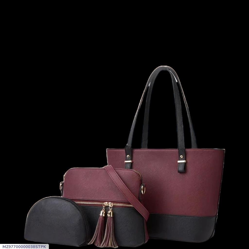 • Material: PU Leather • Pattern: Textured • Number Of Pieces: 3 Pcs • Product Feature: Top Handle • Gender: Women's • Color: Maroon, Black • Package Includes: 1 x Shoulder Bag, 1 x Crossbody Bag, 1 x Pouch • Length: 12 Inches • Width: 15.5 Inches • Height: 12 Inches • Note: There might be an error of 1-3 cm due to manual measurement, and slight color differences may occur as a result of varying lighting and monitor effects.